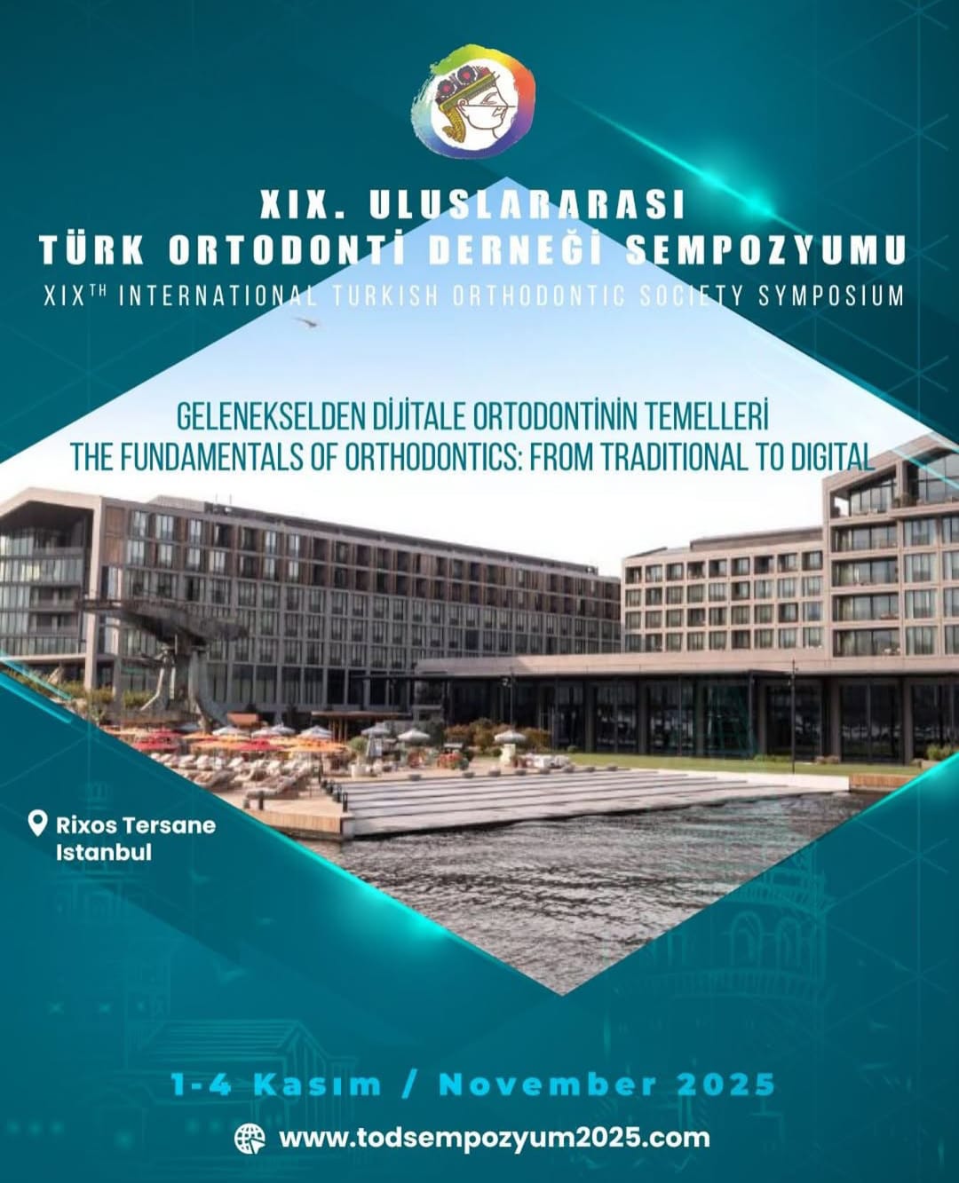 XIX. Uluslararası Türk Ortodonti Derneği Sempozyumu “Gelenekselden Dijitale Ortodontinin Temelleri” ana temasıyla 01–04 Kasım 2025 tarihleri arasında Rixos Tersane Hotel – Haliç İstanbul’da düzenlenecektir.